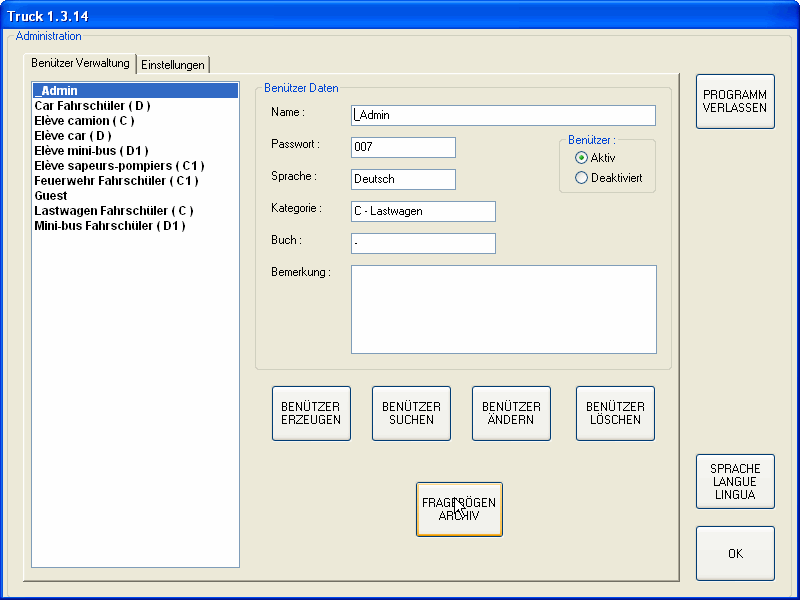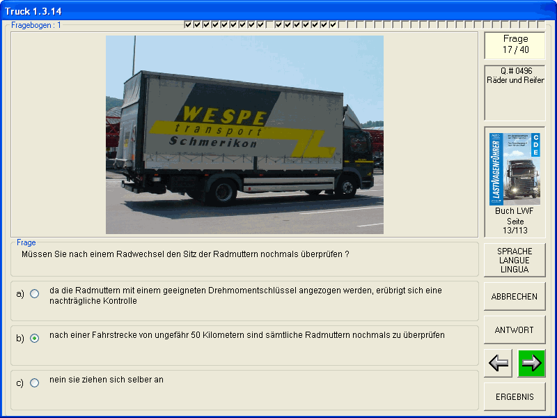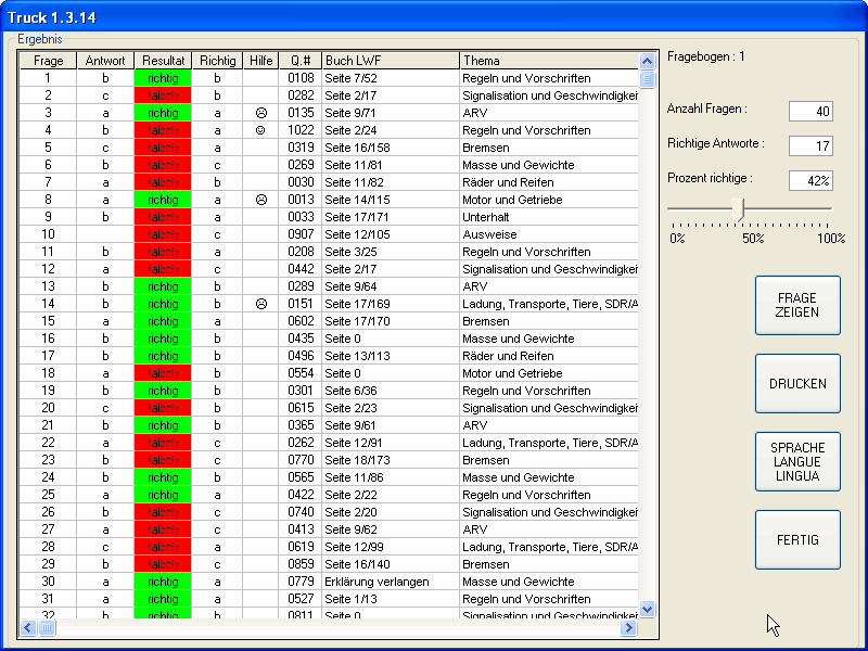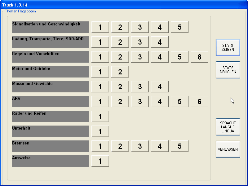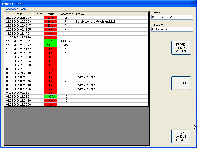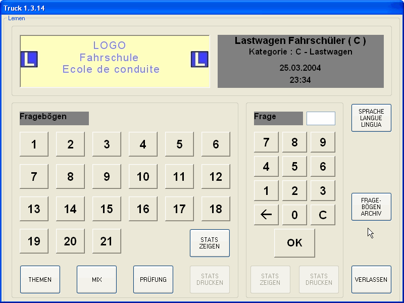 TRUCK est un logiciel d'apprentissage trilingue (F/D/I) de théorie camion pour les catégories C, C1, D et D1 (Camion, Sapeur-Pompier, Car et Mini-Bus).